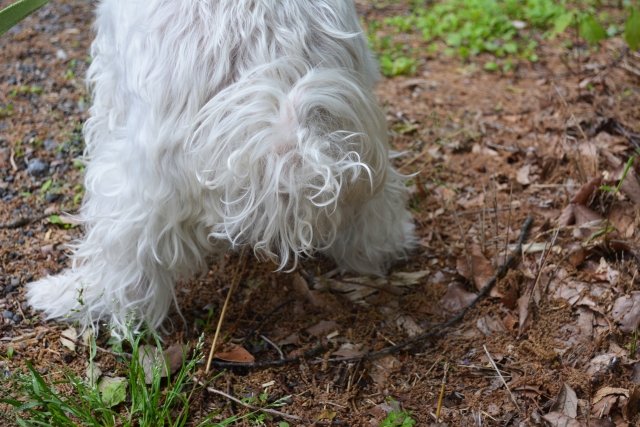 散歩中に回収した糞には、枯れ草・土・砂利・小石などが必ずと言っていいほど付着しています。